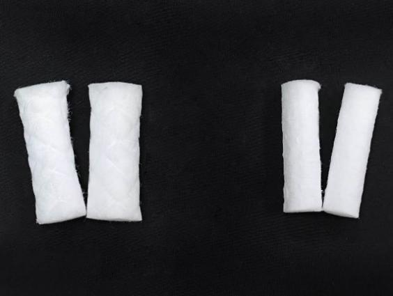 For det andre, fordi flettet bomullsrull er mer luftig enn vanlig dentalbomull, er absorpsjonskapasiteten til flettet bomullsrull langt større enn den vanlige under samme størrelse. Absorpsjonskapasiteten til dental bomull er hovedsakelig i to aspekter, vannabsorpsjonshastighet og vannabsorpsjonsvolum. Fordi bomullsfibrene til flettet bomullsrull er vertikale, og bomullsfibrene i vanlig tannbomull er spiralformede, vil vannabsorpsjonshastigheten til flettet bomullsrull være raskere, og mer væske vil bli absorbert.