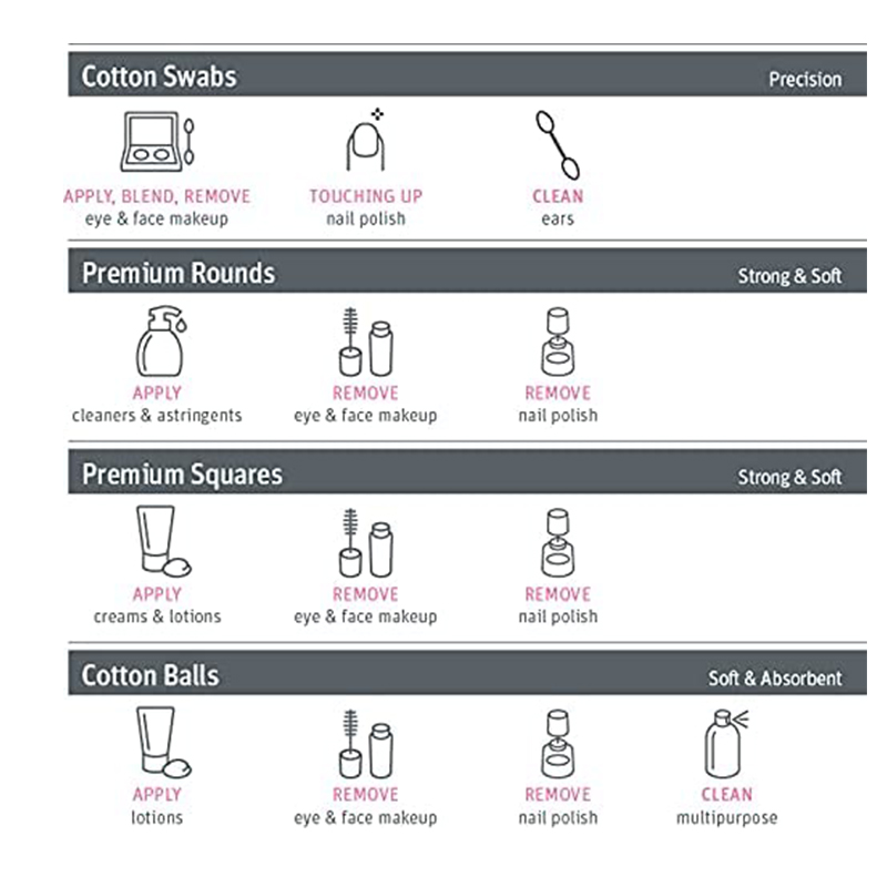 Ideell for fjerning av sminke og neglelakk, påføring av rensemidler, astringerende midler og lotioner.