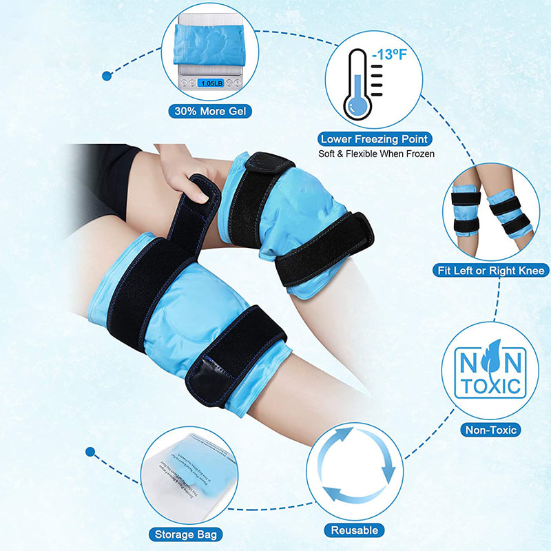 Sammenlignet med andre isposers frysepunkt: -0,4°F, er vår gjenfrysbare ispose -13°F, det nedre frysepunktet kan tåle lengre frysetid i stedet for å bli hardt lett, så kneisen er fleksibel nok til å konturere kneet vårt tett.
