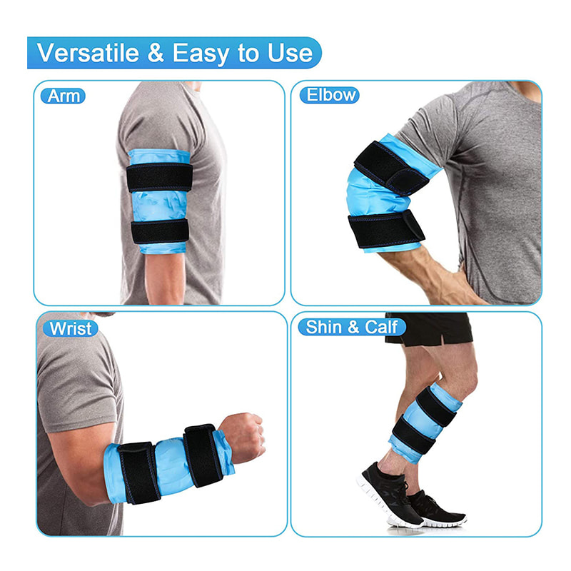 De lange elastiske neoprenstroppene (lengde: 25,5”) er enkle å sikre og praktiske å bruke kaldterapi med ispakken uten å hindre benbevegelser.