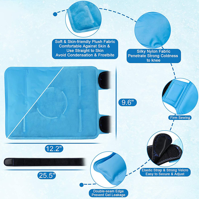 Relief kne-ispakken bruker et skånsomt og hudvennlig mykt plysjstoff som trenger gjennom mild kulde til forstuet kne og vil ikke generere kondens som gjør kluten våt, så den myke plysjen er tilgjengelig for bruk rett på huden, og fjerner frykten for frostskader. Begynn på den myke siden og snu den for å bruke silkeaktig nylon, gjennomtrengende intens kulde hvis du føler at den myke siden ikke er helt kald nok.