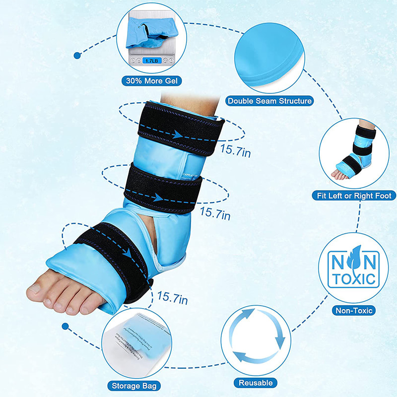 Ankelispakken kommer med elastiske neoprenstropper som enkelt kan justeres for å passe anklene og gir kraftig kaldkompresjonsterapi for å få den lindrende effekten på ankelsmerter, fotsmerter og hælsmerter.