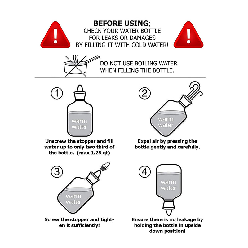 Ta tak i halsen på varmtvannsflasken. Fyll sakte på vann opp til 2/3 full.