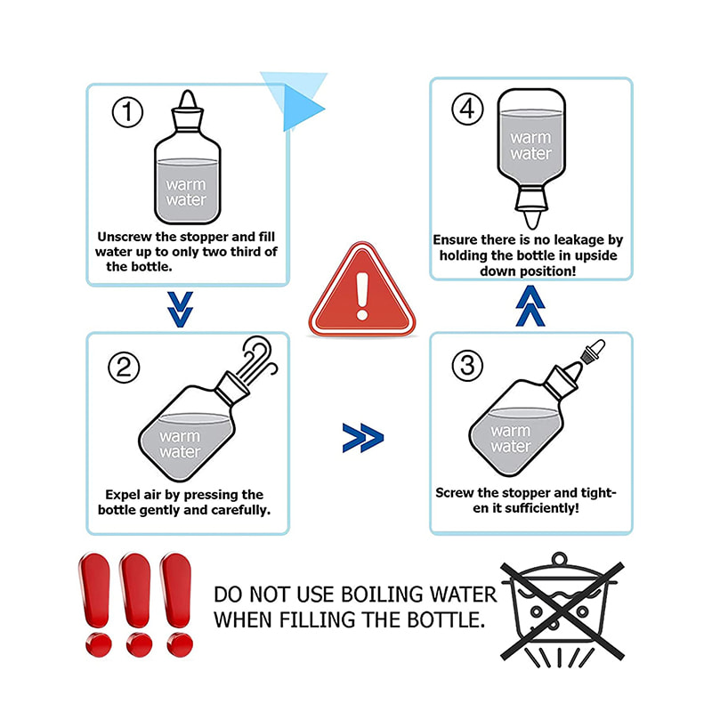 Ta tak i halsen på varmtvannsflasken. Fyll på vann sakte opp til 2/3 full.