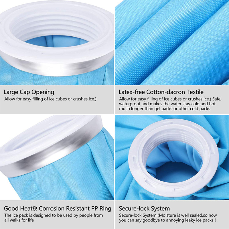 Fyll ganske enkelt med is og vann for å lindre ubehag fra hodepine, blåmerker, migrene, muskelsmerter og hevelser.