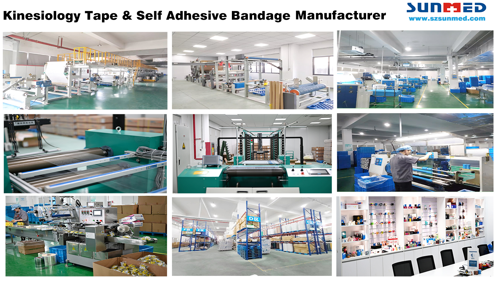 Våre markeder inkluderer sykehus, førstehjelpsleverandører, supermarkeder og sportsbutikker. I 2008 etablerte vi vår førstehjelpsfabrikk for å møte kravene til våre førstehjelpskunder. I 2021, for å imøtekomme våre kunders økende behov, etablerte vi vår egen fabrikk for kinesiologitape, kohesive bandasjer (selvklebende omslag) og elastiske selvklebende bandasjer.