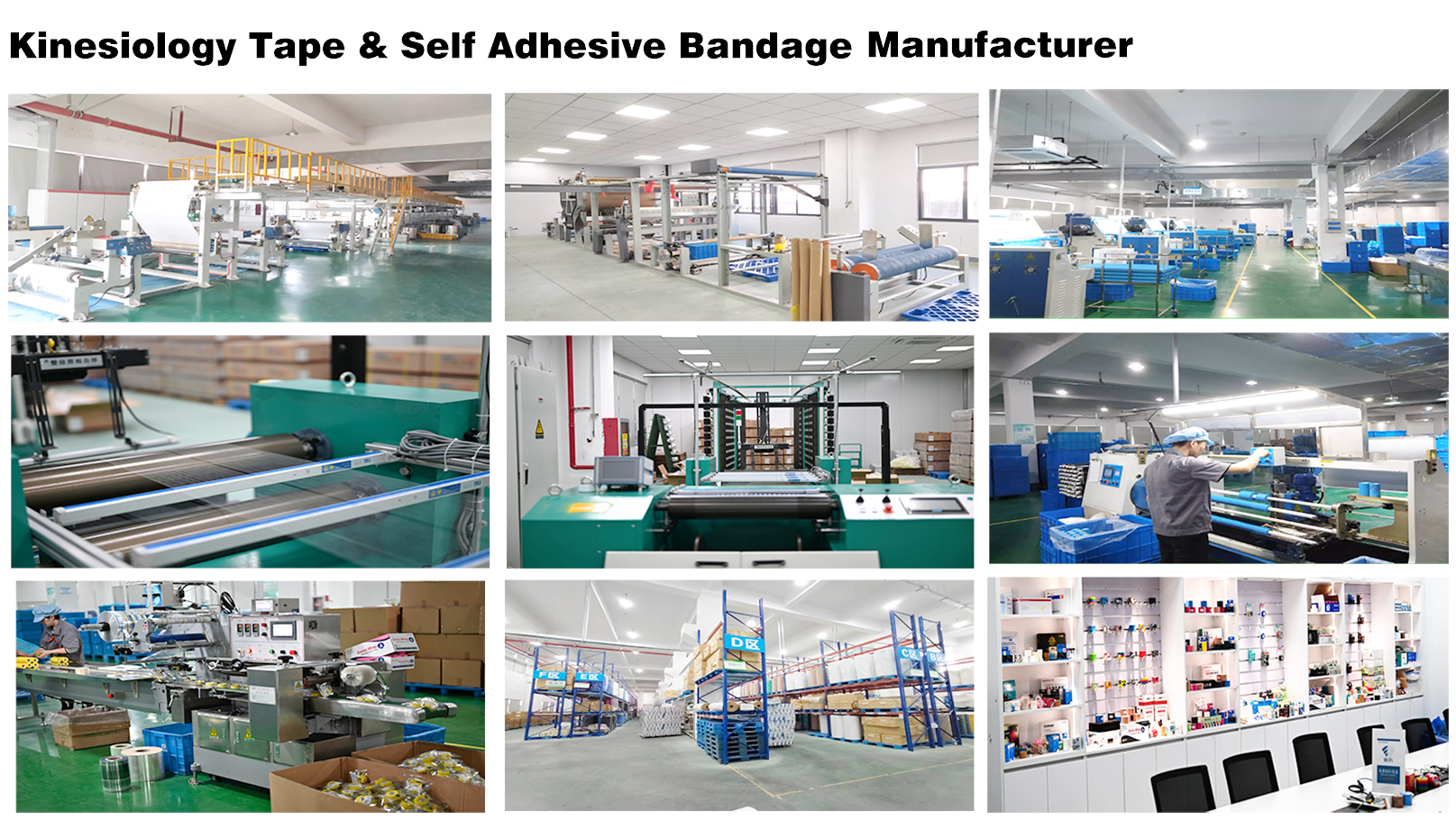 Våre markeder inkluderer sykehus, førstehjelpsleverandører, supermarkeder og sportsbutikker. I 2008 etablerte vi vår førstehjelpsfabrikk for å møte kravene til våre førstehjelpskunder. I 2021, for å imøtekomme våre kunders økende behov, etablerte vi vår egen fabrikk for kinesiologitape, kohesive bandasjer (selvklebende omslag) og elastiske selvklebende bandasjer.