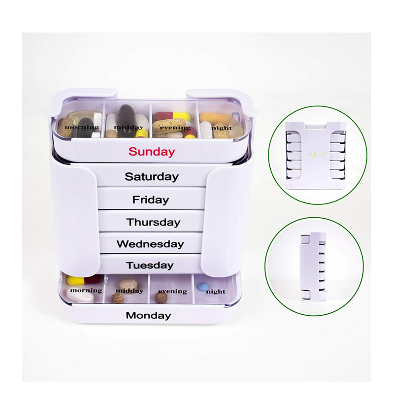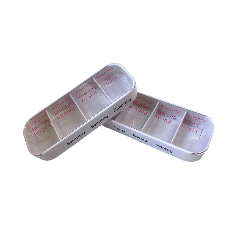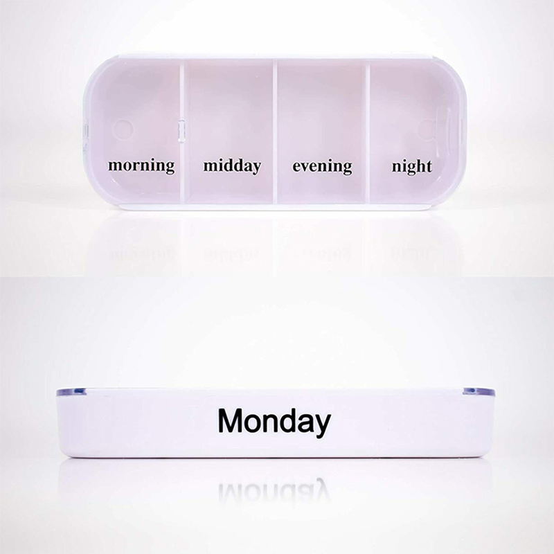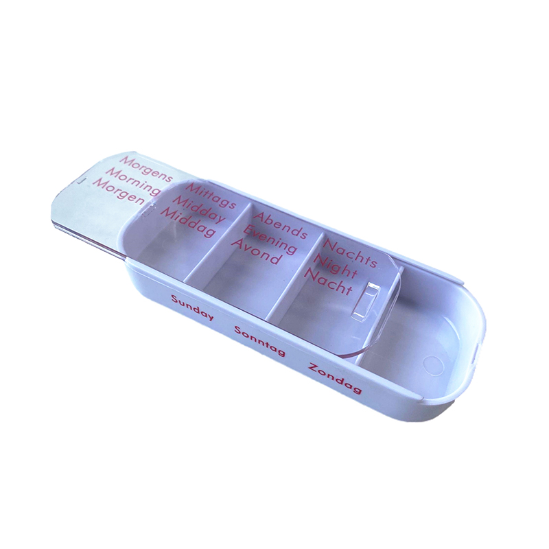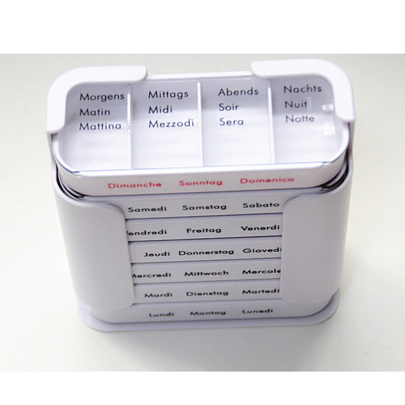 Den ytre dekselet er designet gjennomsiktig og hvert brett har en unik lys farge slik at brukeren enkelt kan skille ukedager.