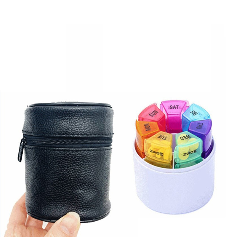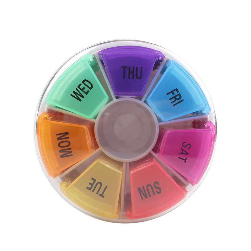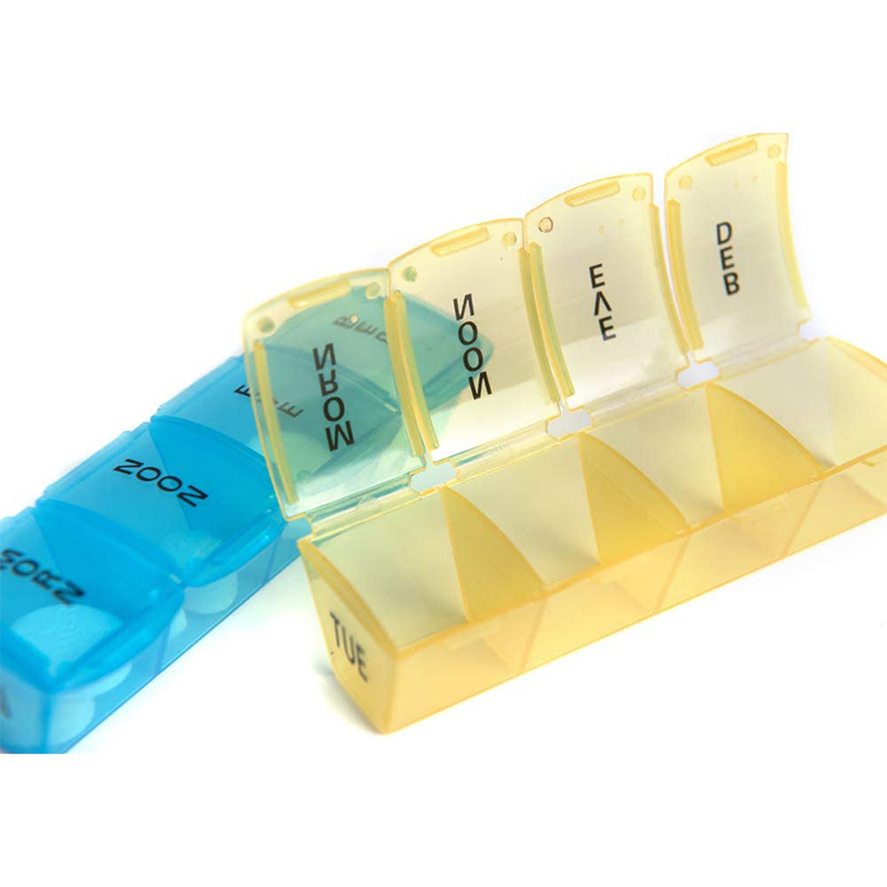 Hver kompakte medisinboks er trykt med ukes dato- og klokkeslettikoner, og hver ukentlige pilleboks kan lett skilles fra 7 forskjellige farger.