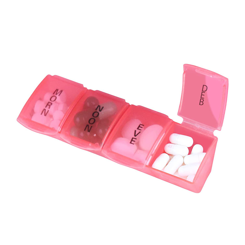 Hvert brett er delt inn i 4 rom. Tilleggsarrangør med separate lokk, pillepåminnelse kan bæres med deg