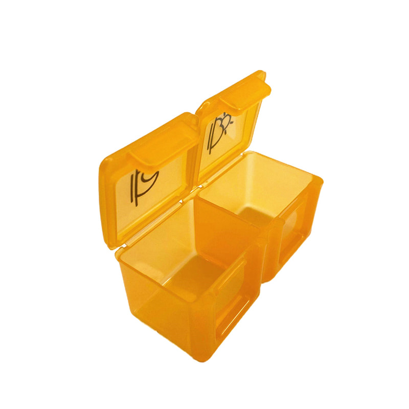 Hver pilleboks har et lokk som låses sikkert slik at piller ikke søles ut.