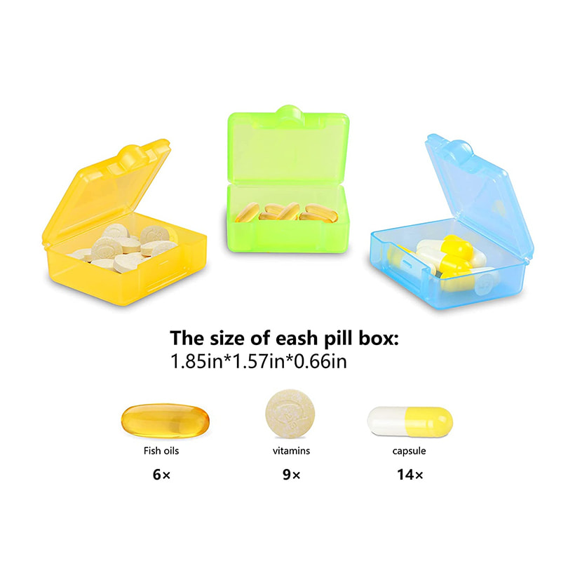 Den daglige pilleboksarrangørens størrelse er like stor som en håndflate, kan enkelt legges i vesken eller lommen.