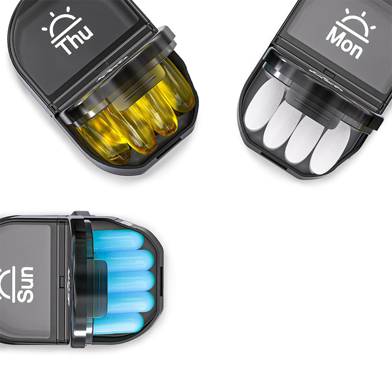 Denne pilleholderen passer inn i vesken, kofferten, ryggsekken, lommen, treningsbagen, noe som betyr at du kan ta den med deg hvor som helst.