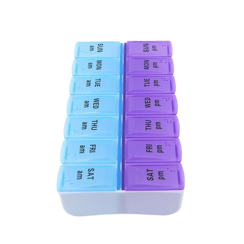 Lys farge på den individuelle indre pilleboksen tilsvarer én dag i uken.
