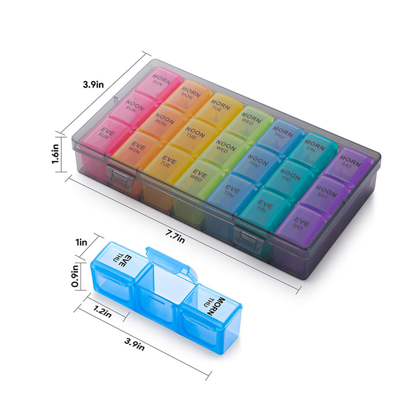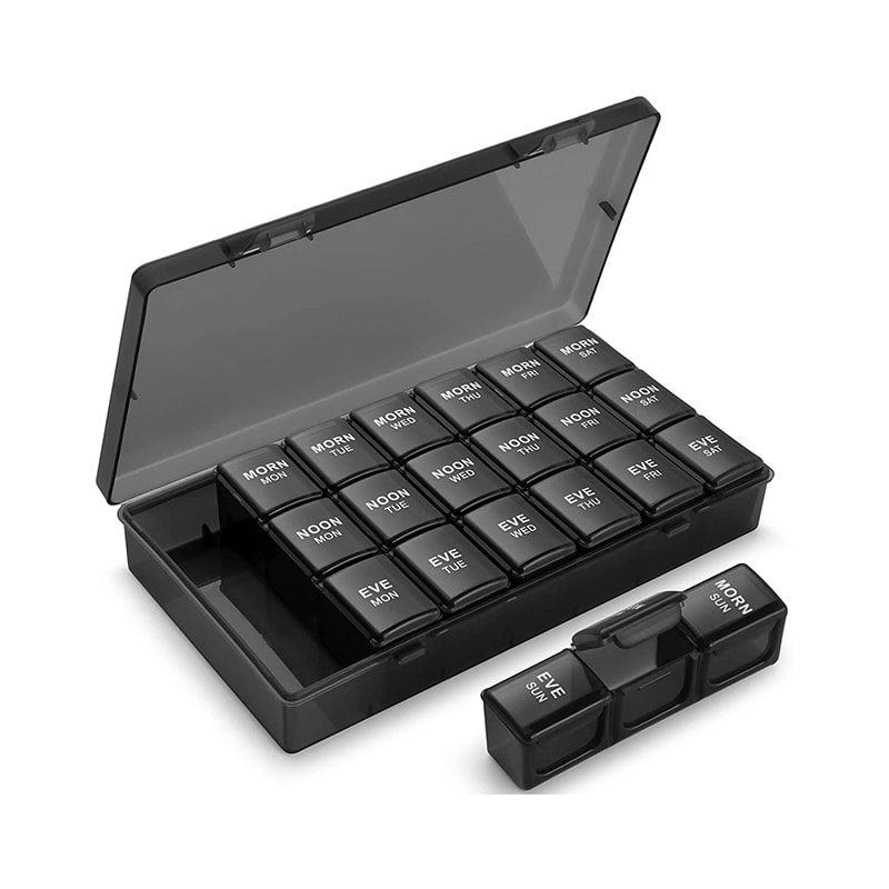 Ukentlig 7 dagers pilleorganisatorfunksjoner med stor plass, hvert rom kan lagre 6 fiskeoljer/6 vitaminer.