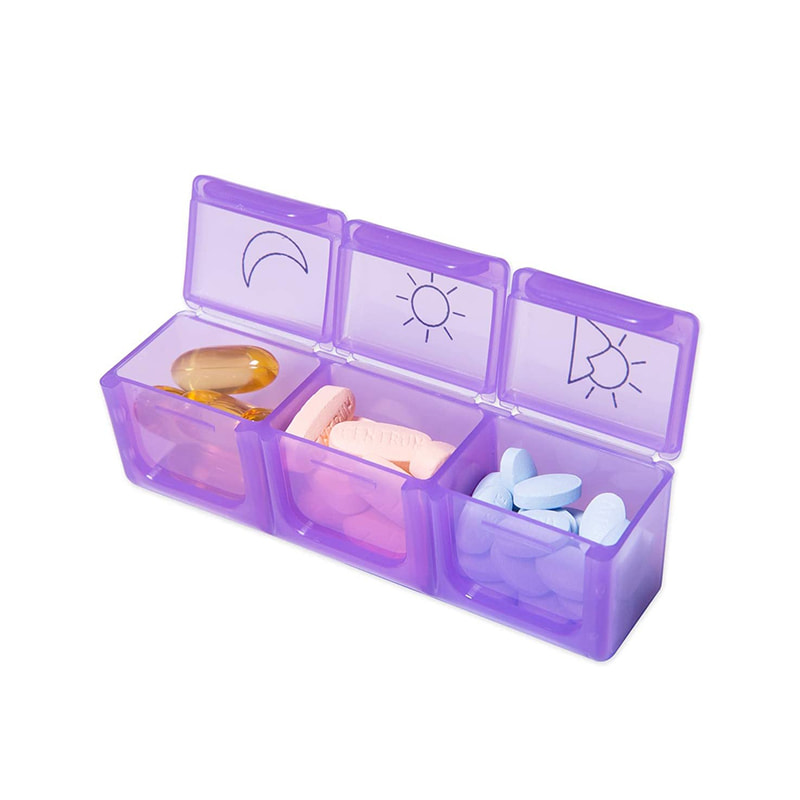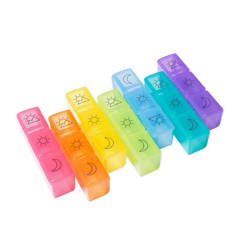Hvert daglige pilleetui er fargekodet, og designet med 3 rom - morgen, middag, kveld.