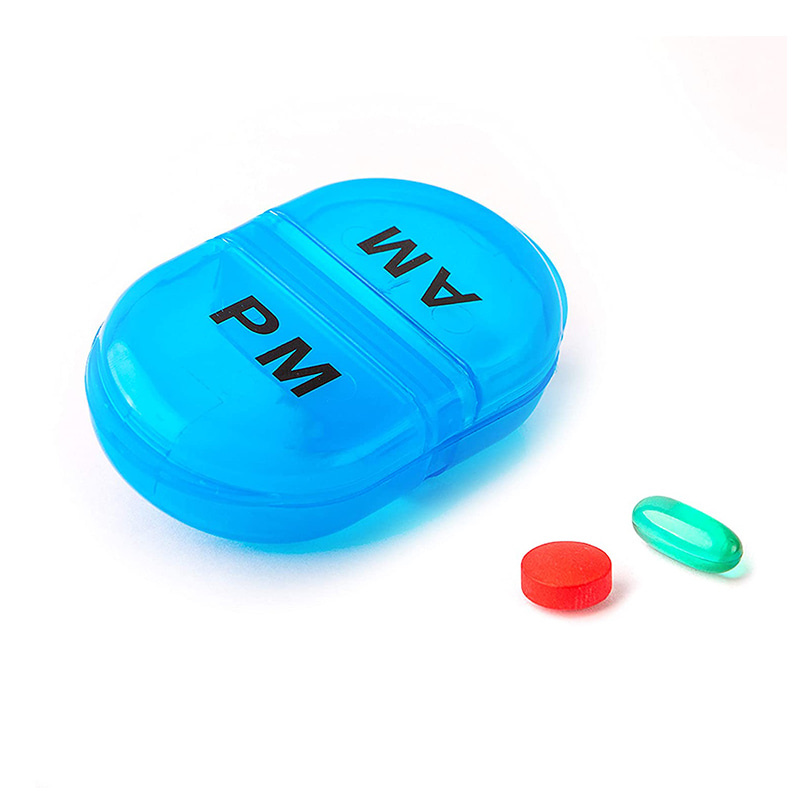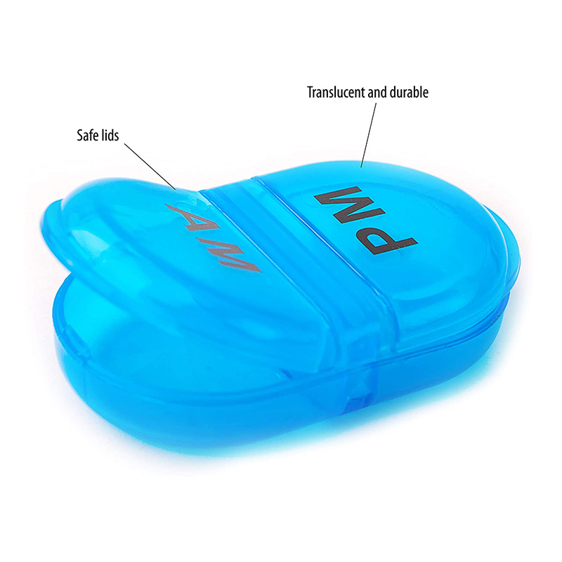 2 ekstra store rom, 1 etui AM for morgenmedisiner, 1 med PM for kvelds- eller nattmedisiner. Lettere å få tak i.