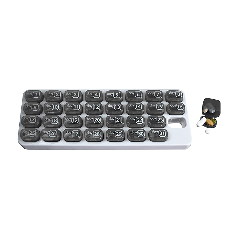 Designet for å organisere dine månedlige medisiner og daglige vitamindoser hjemme, og kan enkelt tas av for å reise på farten.