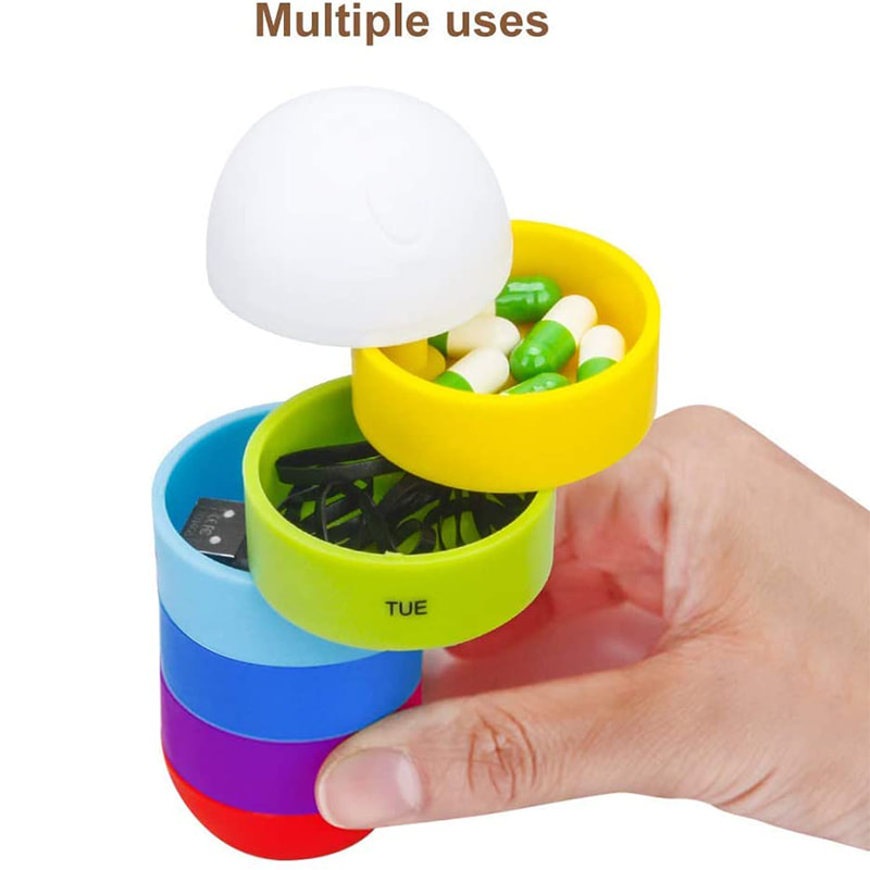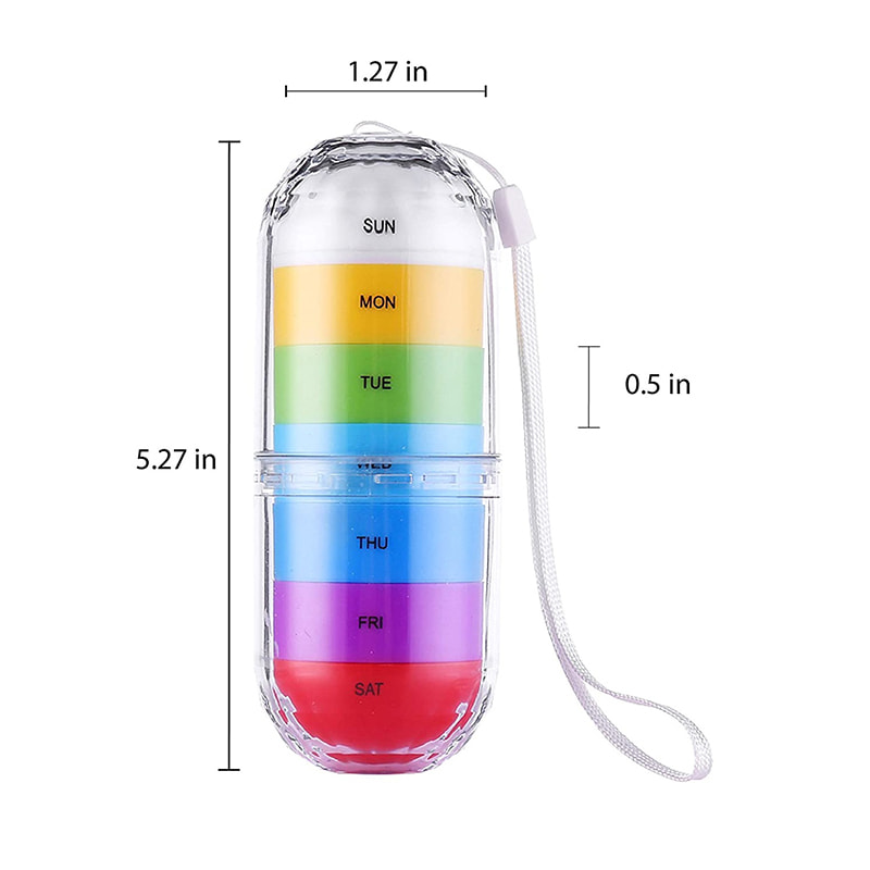 See Details7 rom er stablet opp for å forme en søyle, den ligger godt i hånden og kommer med en snor slik at du kan henge pilleholderen på vesken, ser ut som en dekorasjon. Siden rommene kobles til en søyle, tar den liten plass. Du kan til og med legge den i lommen.