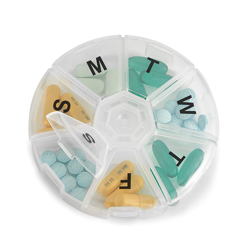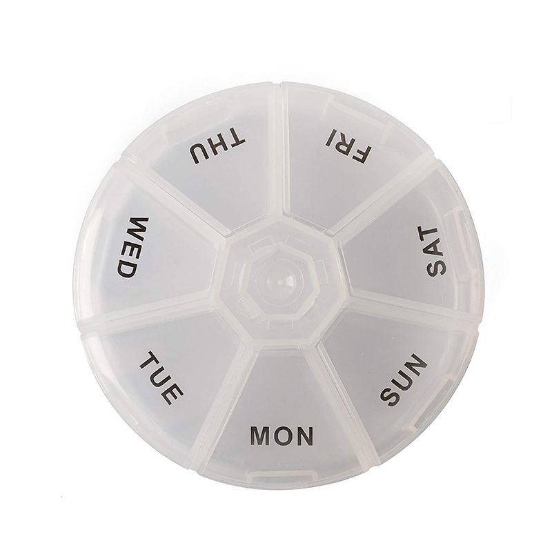 Pilleplanlegger har gjennomsiktige lokk og kropp for maksimal synlighet for å hjelpe til med å forebygge.
