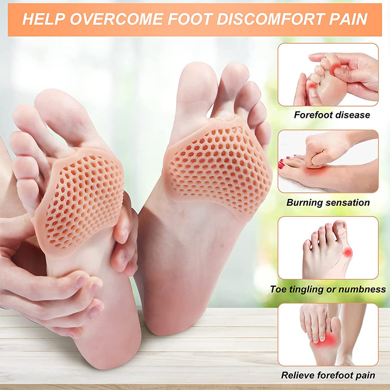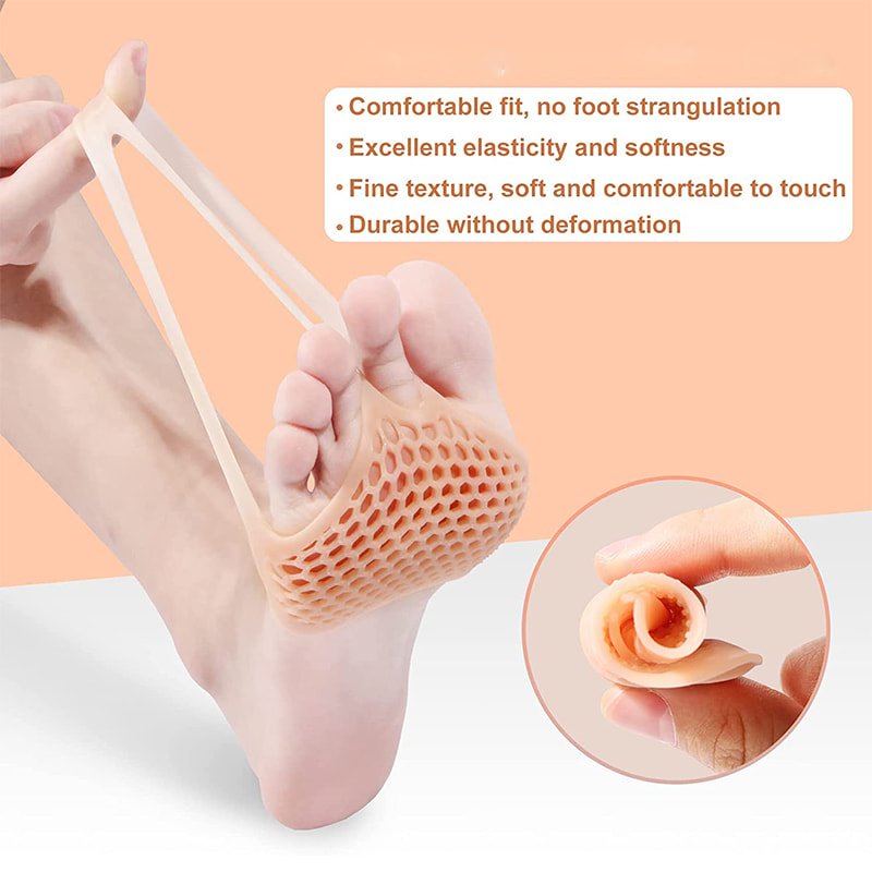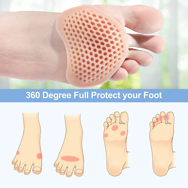 Honeycomb-designen til metatarsalputen gjør produktet med god pustende evne, og 3 separate hull gjør at denne fotputen kan pakke føttene dine bedre, sklisikkert design.