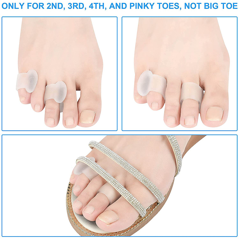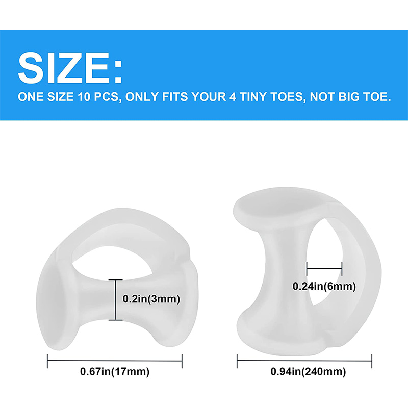 Små tåseparatorer hjelper deg med å frigjøre tærne dine, redusere gnidning og avlaste trykket, forhindre overlappende tå-, blemmer- og maissekundære skader og hudinfeksjoner.