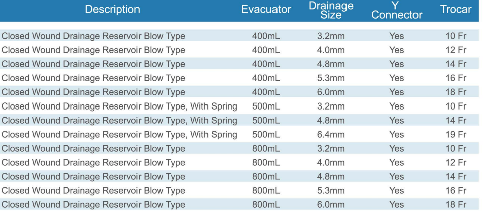 Hjem / Produkter / Kirurgisk sugehåndtering / Sårdreneringssystem / Lukket sårdreneringsreservoar (hul type)